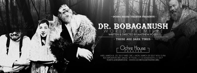 Matthew Posey, genius behind The Ochre House, writer and director of most of their shows, has a unique gift for creating absurd, strange, shticky, profane, hilarious pieces with a cynical undercurrent. I say this with great admiration. Cynicism is often a powerful impetus for brilliant satire. Dr. Bobaganush is a bold, funny, fierce indictment of the holocaust and our current regime. As an elderly Jewish friend of mine once pointed out, the parallels are ugly and unsettling, and Posey has used his magnificent craft to stir us to the quick. You don’t know whether to weep or guffaw. It’s not difficult to watch until the very end.